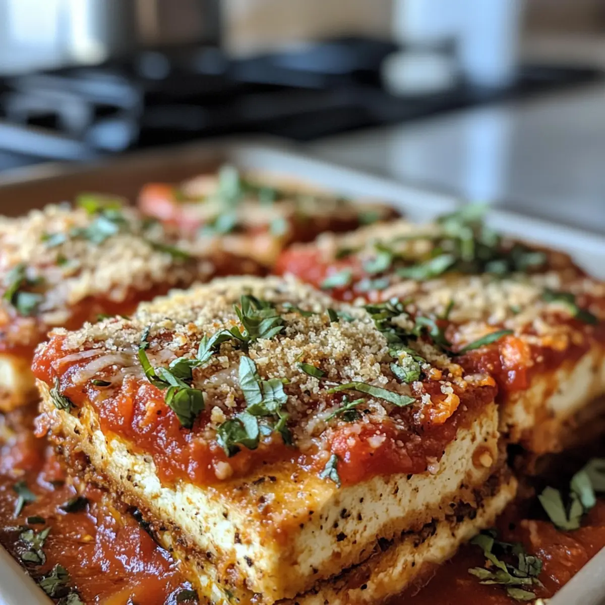 Enjoy a healthy twist on a classic with this Vegan Tofu Parmesan, featuring crispy tofu and bold flavors.