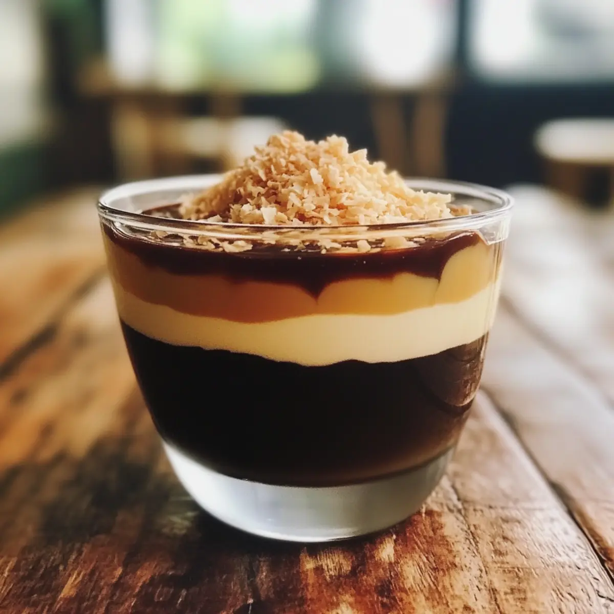 As I sipped my morning brew, I was transported to the bustling streets of Vietnam, where the rich aroma of coffee wafts through the air. Inspired by those vibrant café moments, I decided to create a delightful treat: Vietnamese Coffee and Cream Jelly (Thạch Cà Phê). This no-cook dessert offers a unique experience, featuring layers of robust coffee and velvety coconut cream that dance together in perfect harmony. Not only is it incredibly easy to prepare—perfect for those warm days when you’re looking to impress without the fuss—but it’s also a show-stopping conversation starter that captures the essence of those dreamy afternoons. Curious about how to elevate your dessert game while keeping it effortlessly simple? Let’s dive into this delicious recipe! Why is Vietnamese Coffee and Cream Jelly special? Layered Delight: Each spoonful provides a perfect blend of bittersweet coffee and creamy coconut, making it an extraordinary treat that’s both refreshing and satisfying. No-Cook Simplicity: No need for complex techniques or lengthy prep—this delightful dessert comes together effortlessly, making it ideal for both novice cooks and busy chefs. Versatile Variations: Feel free to experiment! You can easily swap instant coffee for freshly brewed espresso or add a hint of spice like cinnamon to create a unique flavor twist. Elegantly Beautiful: With its stunning layers, it’s not just dessert; it’s a gorgeous centerpiece for any occasion that’s sure to impress your guests. Perfect for Any Season: Whether served chilled on a sunny day or as a light finish to a winter meal, this jelly keeps your dessert game strong year-round. Ready to explore more delicious recipes like our Funfetti Dip Dessert or Spinach Stuffed Sweet Potatoes? Let’s keep cooking! Vietnamese Coffee and Cream Jelly Ingredients For the Coffee Layer • Water – Base for the jelly; ensures a balanced flavor without distractions. • Instant Coffee (2 tbsp) – Delivers a rich, aromatic flavor; for a stronger taste, use brewed espresso. • Granulated Sugar (½ cup) – Sweetens the coffee layer; adjust to taste based on your sweetness preference. • Salt (⅛ tsp) – Enhances the overall flavor profile of the coffee, making it more vibrant. • Agar Agar Powder (1 tbsp) – A plant-based gelling agent essential for achieving that perfect jelly texture. For the Coconut Layer • Water – Complements the coconut and coffee layers, helping them set beautifully. • Coconut Milk (200 ml full-fat) – Infuses the jelly with tropical creaminess; substitute with any plant-based milk if desired. • Evaporated Milk (200 ml) – Adds depth and a subtle caramel note; can be swapped with almond or oat milk for a plant-based version. • Granulated Sugar (½ cup) – Sweetness for the coconut layer; tweak to match your taste preference. • Agar Agar Powder (1 tbsp) – Ensures the coconut layer sets properly, giving it that delightful firmness. Enjoy your delightful Vietnamese Coffee and Cream Jelly creation—a luscious dessert that’s as beautiful as it is delicious! Step‑by‑Step Instructions for Vietnamese Coffee and Cream Jelly Step 1: Prepare the Ingredients Gather all your ingredients for the Vietnamese Coffee and Cream Jelly, ensuring you have instant coffee, agar agar, sugar, coconut milk, and evaporated milk. Set up a saucepan, a mixing bowl, and a mold for pouring the jelly. Having everything ready will streamline your process and make it enjoyable. Step 2: Dissolve Agar Agar for Coffee Layer In a saucepan, bring 600 ml of water to a gentle simmer. Add 1 tablespoon of agar agar and stir constantly until it dissolves completely, about 3-4 minutes. You’ll know it’s ready when the mixture becomes clear. This step is crucial for the jelly’s texture and integrity. Step 3: Mix Coffee Mixture In a mixing bowl, combine 2 tablespoons of instant coffee, ½ cup of granulated sugar, and ⅛ teaspoon of salt. Pour in 200 ml of the hot water from the saucepan and mix vigorously until the coffee and sugar are fully dissolved, creating a rich, aromatic mix that defines the coffee layer. Step 4: Set the Coffee Layer Carefully pour the coffee mixture into your prepared mold, ensuring an even layer. Allow it to set at room temperature for approximately 30 minutes until it firms up slightly, then transfer it to the refrigerator for 1-2 hours, or until completely chilled and firm. Step 5: Prepare Coconut Layer In a separate pot, combine another 400 ml of water with 200 ml of full-fat coconut milk, 200 ml of evaporated milk, ½ cup of sugar, and 1 tablespoon of agar agar. Heat the mixture over medium heat, stirring until the agar agar dissolves completely, approximately 3-4 minutes, allowing the sweet, tropical aroma to fill your kitchen. Step 6: Layer the Coconut Mixture Once the coconut layer mixture is ready, gently pour it over the set coffee layer in the mold. Do this slowly to prevent mixing the layers. Return the mold to the refrigerator and allow it to set completely for at least 2-3 hours, ensuring the jelly layers hold their beautiful separation. Step 7: Serve Your Delight After the jelly has fully set, remove it from the mold and slice it into individual servings. To enhance your Vietnamese Coffee and Cream Jelly, consider topping it with fresh fruit or crushed cookies for added texture and flavor. Serve it chilled and enjoy the delightful layers! Expert Tips for Vietnamese Coffee and Cream Jelly Set Time Matters: Allow each layer to set fully before adding the next. Rushing can cause layers to blend, ruining the visual appeal of your Vietnamese Coffee and Cream Jelly. Gentle Pouring: When layering the coconut mixture, pour it slowly over the back of a spoon to prevent it from disrupting the coffee layer below, ensuring a clean separation. Agar Agar Advice: If you’re unfamiliar with agar agar, remember it requires boiling to activate its gelling properties. Make sure it’s completely dissolved for the
